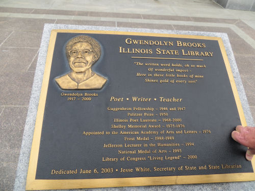 Illinois State Library with 35 Illinois authors etched on its stone