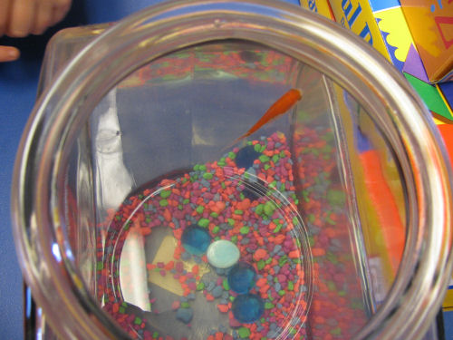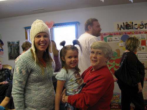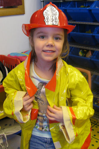 Grandma Kathy and Mommy....Mommy, Erin and Miss Susie....Erin continuing the Fireman theme....The class goldfish which Erin named Pumpkin