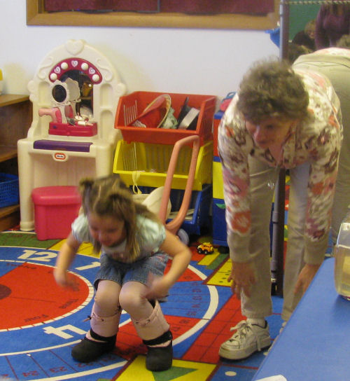 Erin lead us in exercising....Erin and Miss Cindy....Doing the Hokey-Pokey with Mommy
