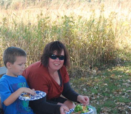 Hannah taking pictures....There was a big gust of wind and a bunch of leaves fell