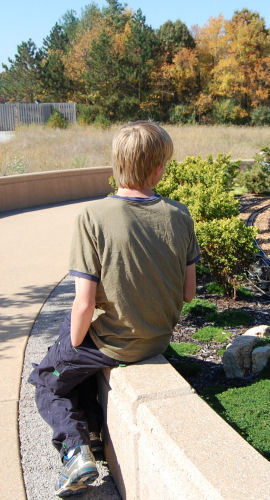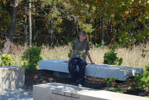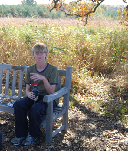 Brendan checking out a gulley....Look, it's Thomas!....Alex on a cool bench