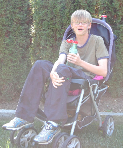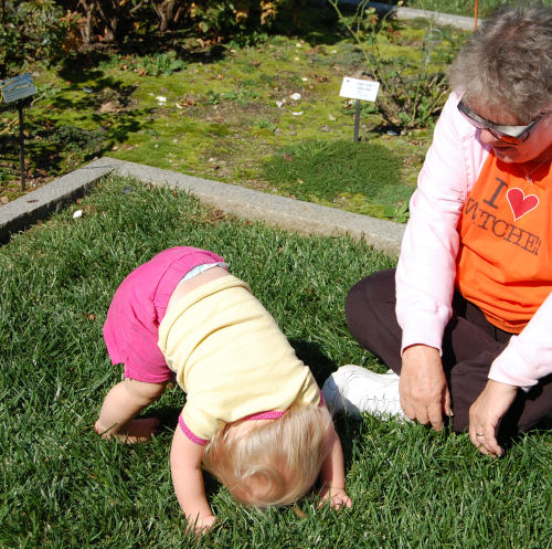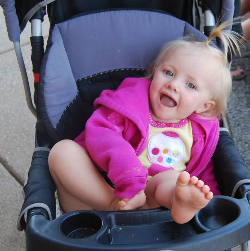 Alex in Tessa's stroller....Tessa does a trick....Owen watching Mommy take a picture of a butterfly....The butterfly