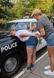 First we re-created a pose from 2013 with Erin and Daphne....A cool guy playing a violin....Walking
