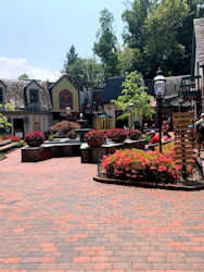 Quaint shopping area....Bubba Gump is always good....Brendan choose the Pinball place
