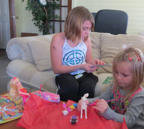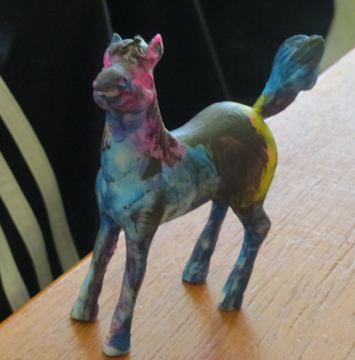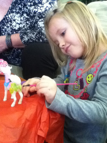Tessa painting her horse