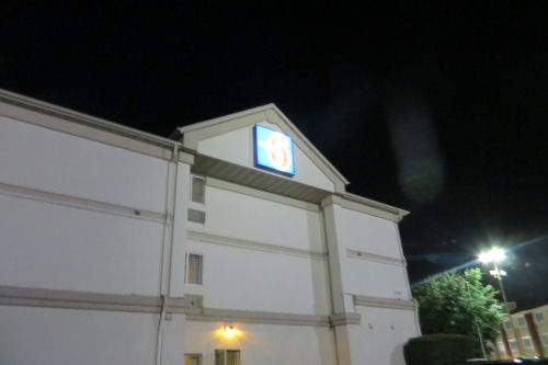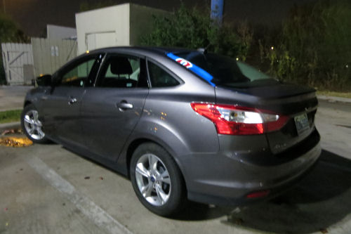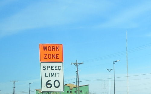 Erin pulled my suitcase....Rented Ford Focus....Nice Motel 6......Work zone sign: Really? 60 mph?