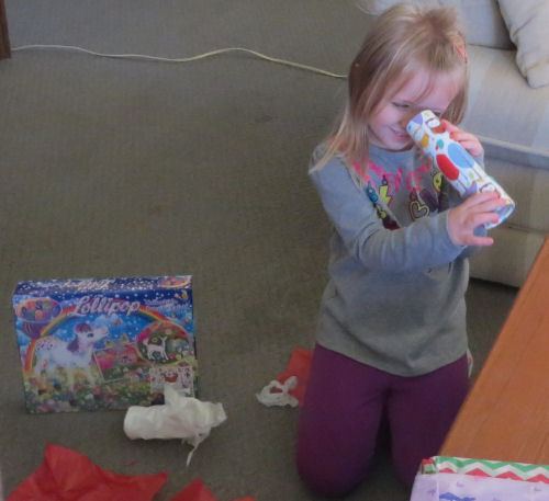 Tessa opening gifts