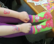 Tessa's tattoos and silly socks....Erin's tattoos....Daphne's tattoos....Tessa and her puzzle
