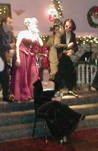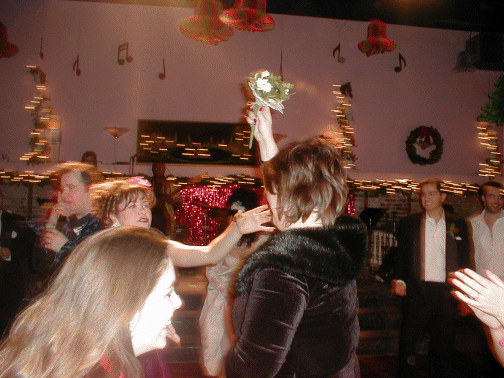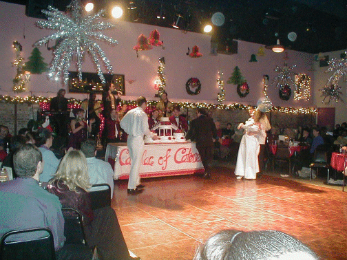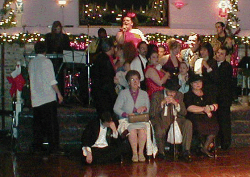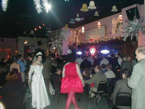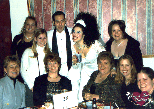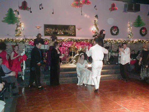 | The Dais where the bridal party danced on the table | The cake | The members of the Wedding Party pose for a picture | Sal and Roxie take the group picture |