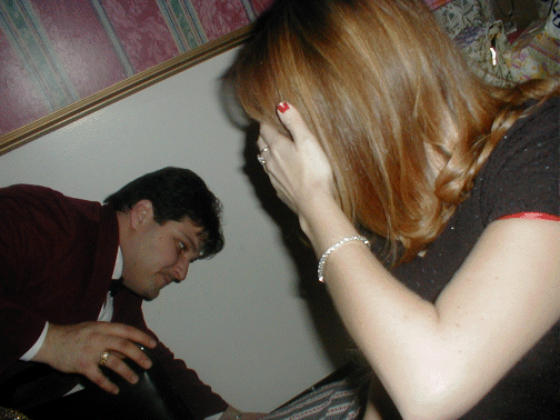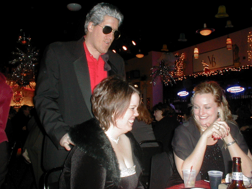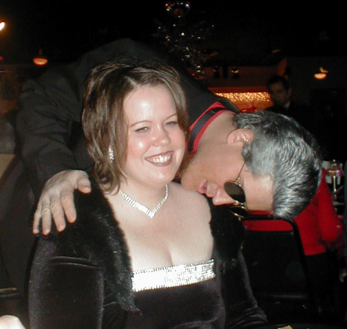 | Jean took Mike's picture and he fell to the floor | Our waiter helped Mike up | Mike poses with Laura | Mike and Laura |