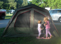 Erin setting up camp....View of Kathy's little blue tent...Good Morning!....Bathed in the morning light