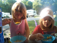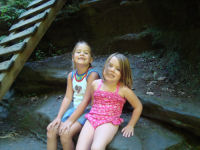 Half way through our canoeing trip, we tipped and fell in water over our heads with a fast current. We made it to safety and some kids on tubes and two kayakers retreived our canoe and stuff. Laura and I each lost a camera, she lost a new watch and our cell phones were down for a couple of days. The girls were a bit shook up but they got over it on the rest of our canoe trip.