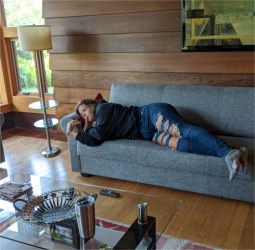 The teens especially made good use of the couches in the living room