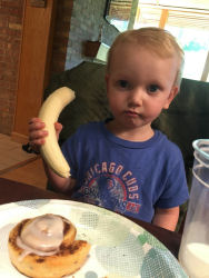 We ate pizza outside because of the Covid. It was fine until the wind started blowing and Owen kept chasing down napkins