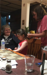 Erin braids Layla's hair....Notice how Layla sneeks a look at Erin during picture taking