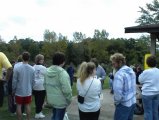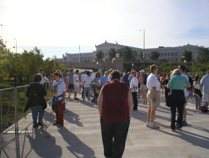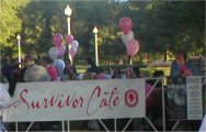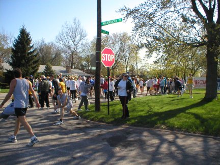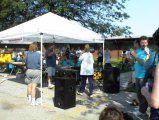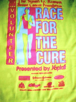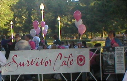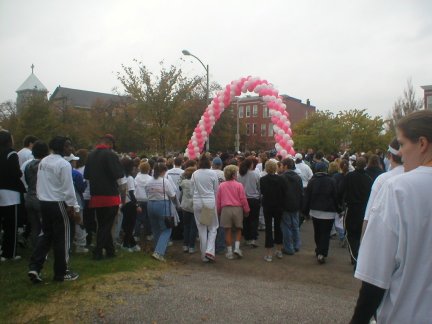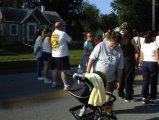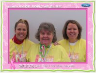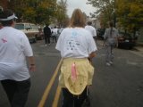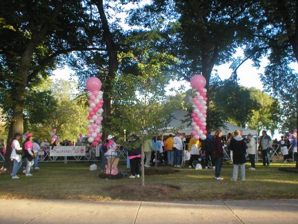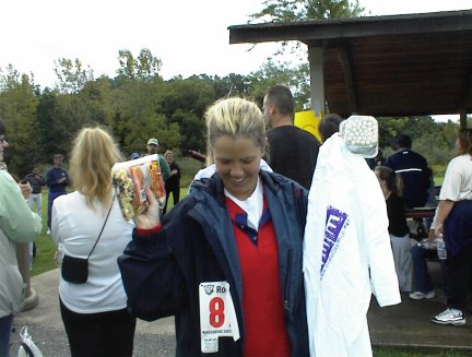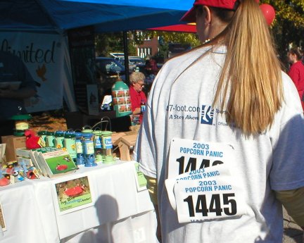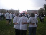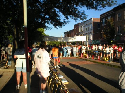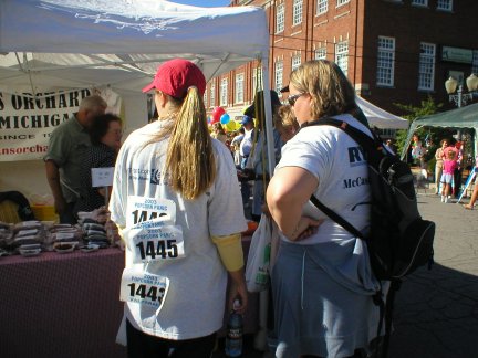 There were about 6,000 people in the race!...Laura wearing her picture of Daphne...The bandstand with a band playing.