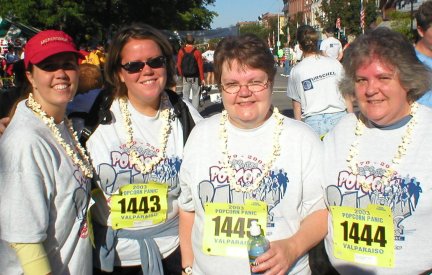 Kathy and Eileen joined Jean and Laura for a walk in Valparaiso. Laura beat her previous record. Kathy and Eileen clocked in at 1 hour and 4 minutes. Kathy held Eileen back....at the back of the pack....but is proud to say she finished. Kathy thought Indiana was flat....where the heck did the hills come from? Eileen pointed out that part of our walk was on Ravine Drive.