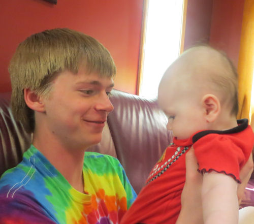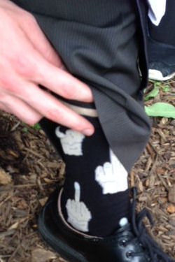 Alex's socks....With Grandma Kathy and Grandpa Terry....Grandpa Terry makes good use of the rose Alex got