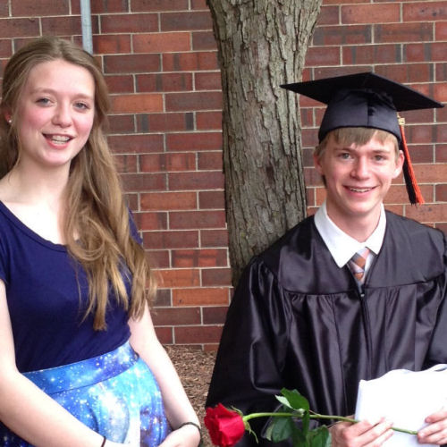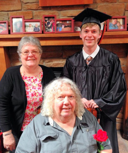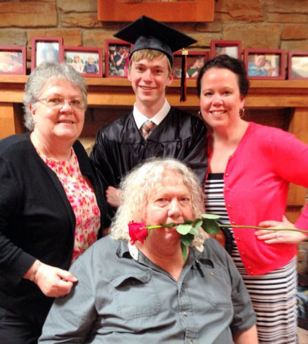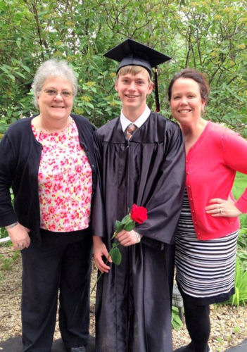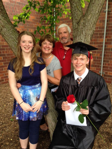 Alex with Grandma Linda, Grandpa Bill and Hannah. Both Grandmothers gave Alex a standing ovation when he received his diploma!
