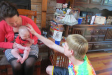 Playing with Layla (Jean and Layla also co-ordinated their outfits....three way co-ordination!)