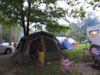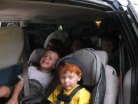 We loaded Jean's mini-van with 2 adults, 5 kids, 2 tents, a canopy, a cooler, a stove, chairs, pillows, blankets, clothes and a fan.
