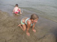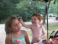 Eating the ice cream outside....Erin lost her first tooth on the ride home!
