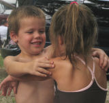 Brendan and Erin had a small disagreement so Jean told them to hug it out. When they did, they both fell to the ground....and laughed.