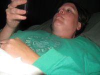 Jean texting while in bed....We played Bananagrams....The glow sticks in the morning
