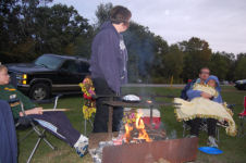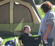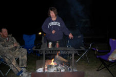 Around 10 p.m., Jim, Sue and Terry headed back to the Inn for the night.  Pat returned to his campsite and I went to sleep in my tent.  Brendan and Owen went to sleep in their tent and Daphne and Erin went to spend the night in the camper with Alex and Hannah.  Sean, Kyle and Michael also returned to their campsite.  The remaining campers sat around and talked.  Then,