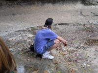 Bridget gets a closer look....They were amused that I kept my Rolaids in a jewelry box....And amazed how my purse contents were organized in zip lock bags