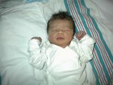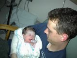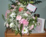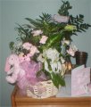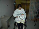 Card, balloon, flowers and Laura with the outfit for the ride home