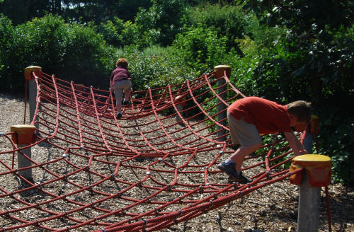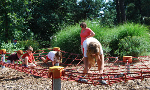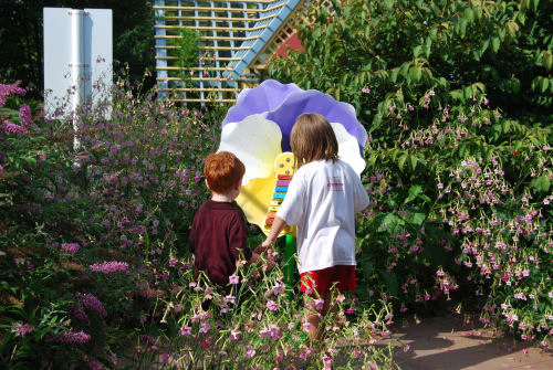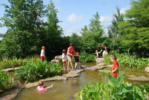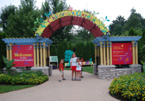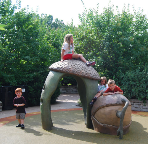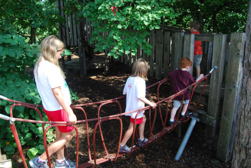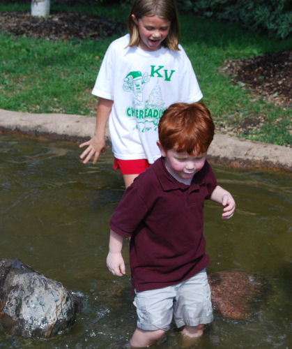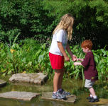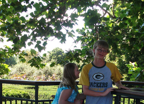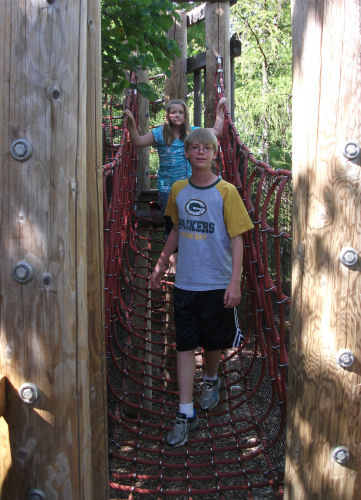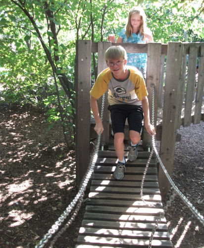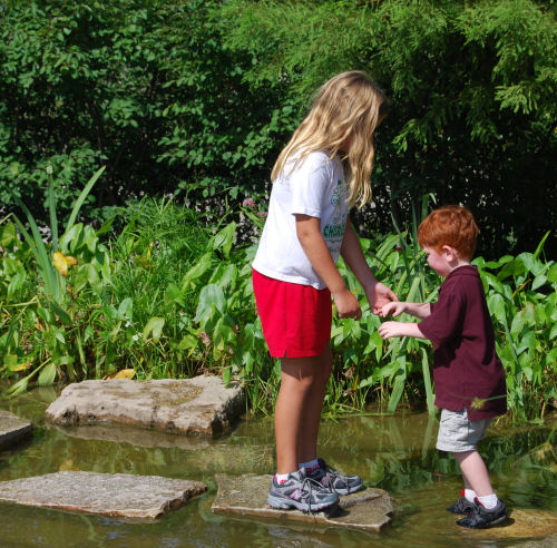 Alex and Hannah on the small bridge....The didn't spend hours in the Children's Garden like their younger cousins