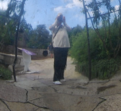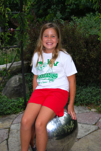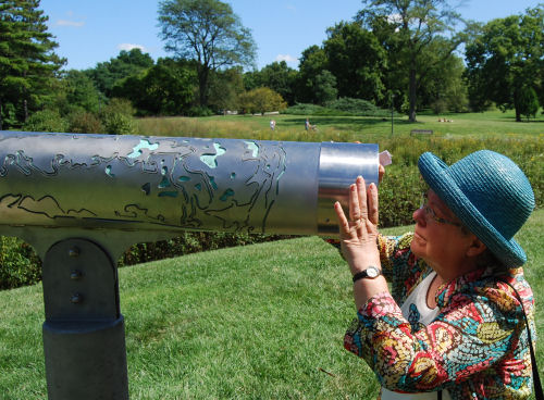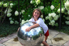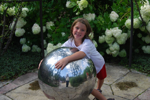 Erin on the silver ball....Grandma Kathy's reflection in the ball....Daphne on the silver ball