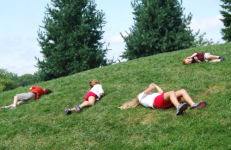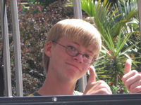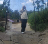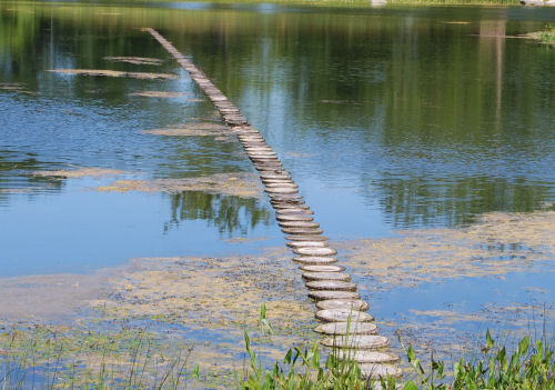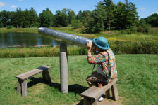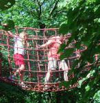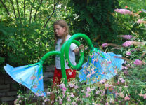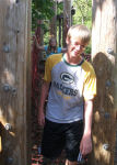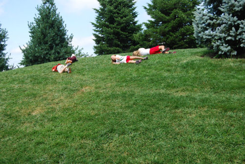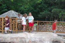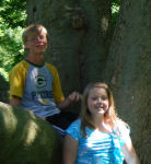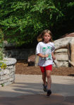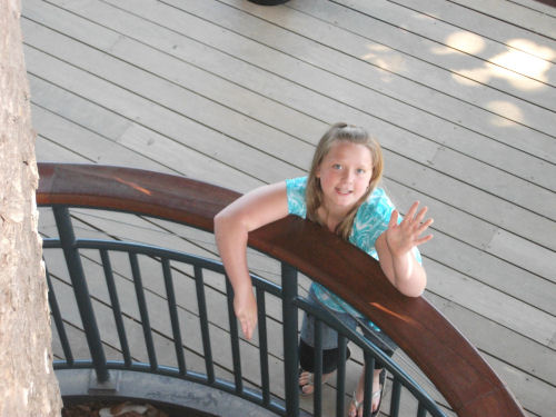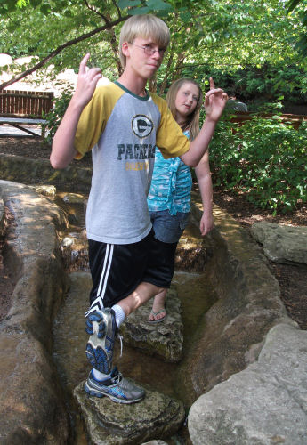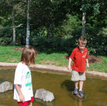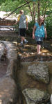 Coming off the big bridge....Hannah in the stream....Alex poses as a flamingo