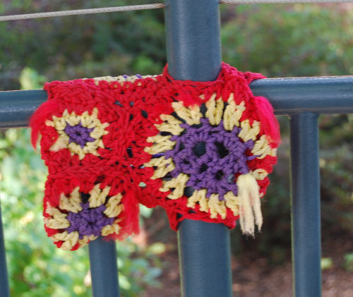 Crocheted patches were found throughout the area....this one was on the Maze platform