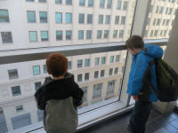 Our hotel...The Sheraton....The boys check out the El from our parking garage