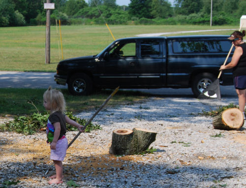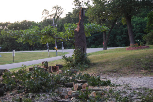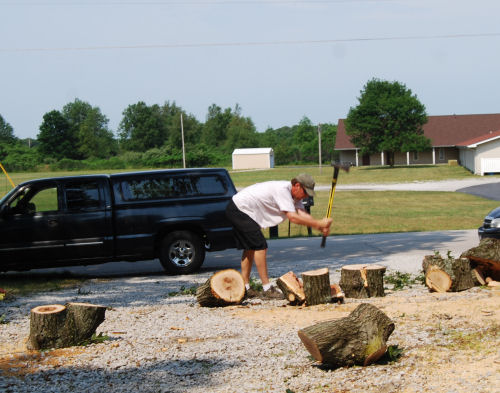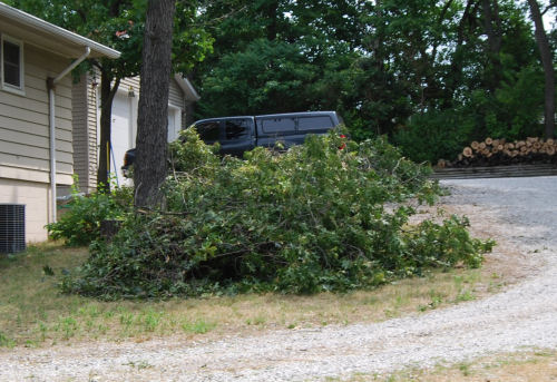 Terry hauled the cut and split wood to the back yard....Jeff will get it when he needs it